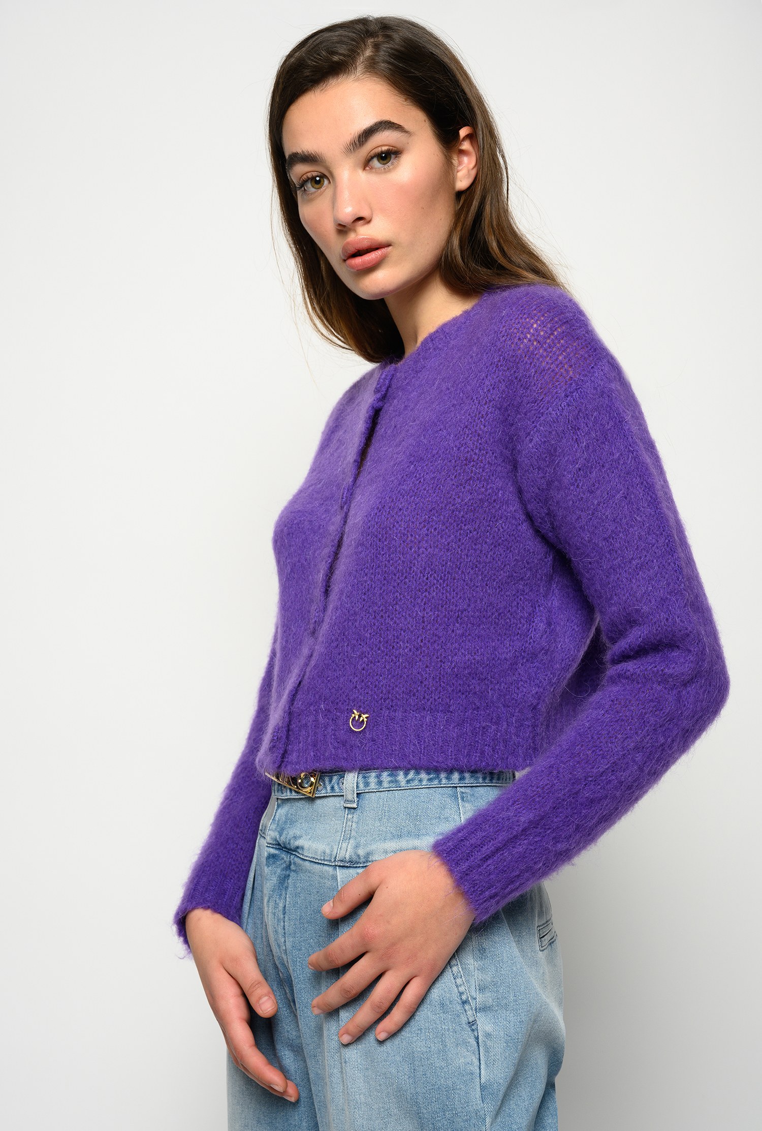 Short cardigan in mohair blend purple short cardigan