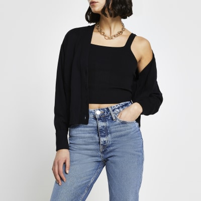 Black ribbed cami and cardigan set ribbed cardigan set