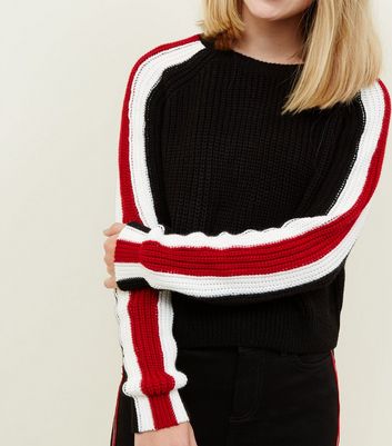 Girls Black Side Stripe Crop Jumper girls black cropped jumper