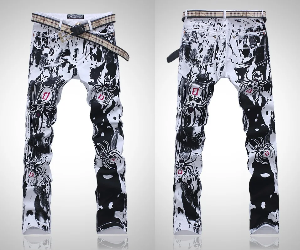 New Men's Tight Skinny Jeans Hole Patch new jeans paint