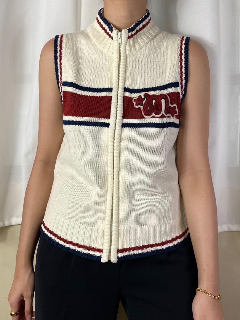 Cream varsity zip up knit vest, Women's zip up knit sweater