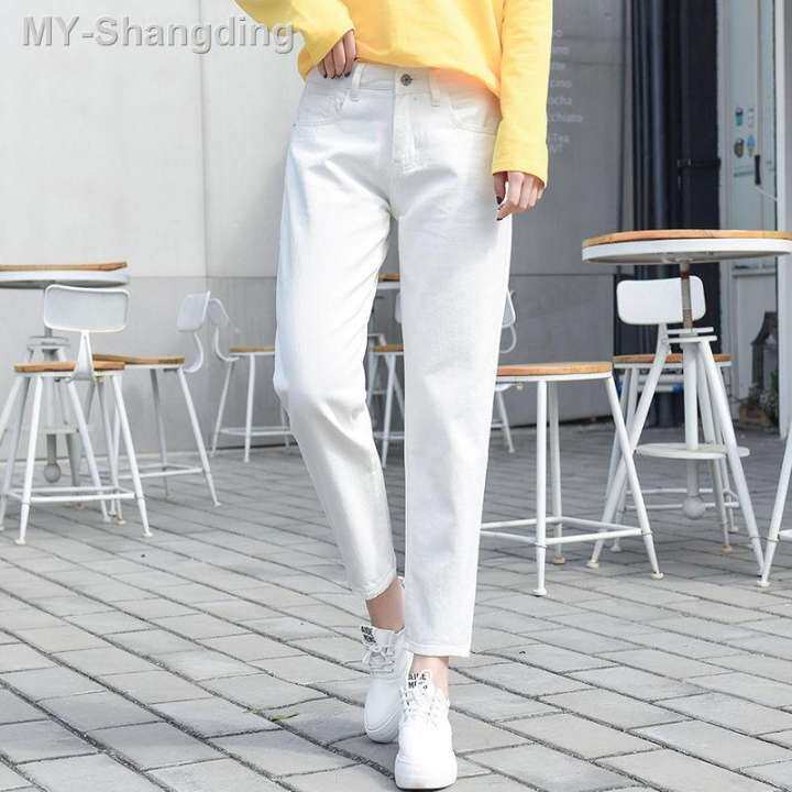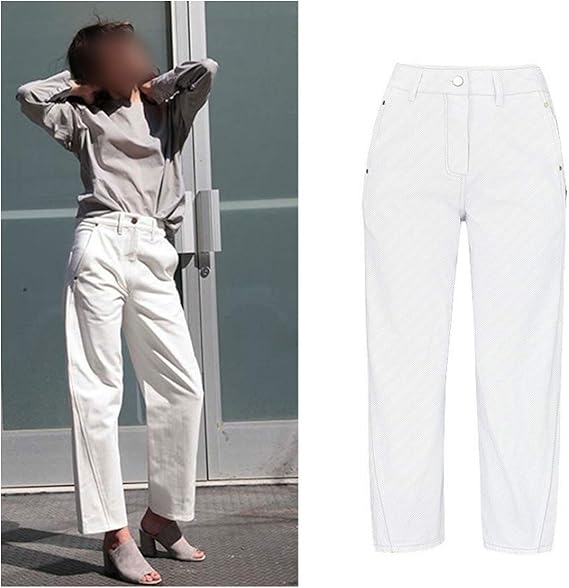 South Korea chic white slim, high waist loose white jeans