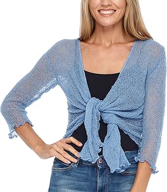 SHU-SHI Womens Sheer Shrug Tie Top navy blue sheer cardigan