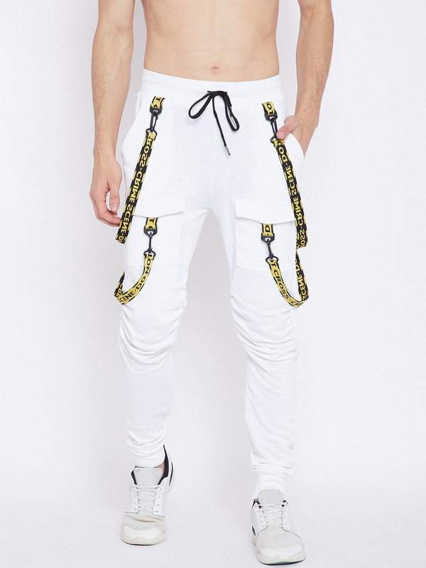 Fugazee Solid Men White Track Pants fugazee solid men's black track pants