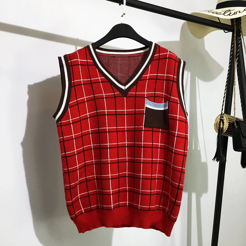 red v neck vest