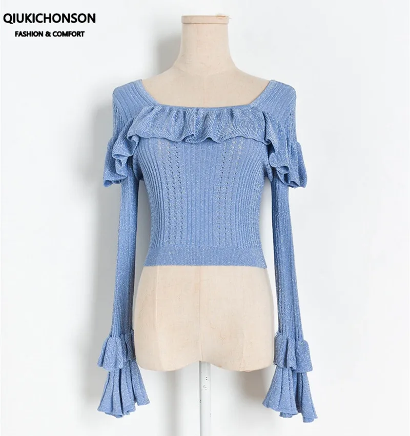 Ruffle Flare Sleeve Crop Top Women lurex jumpers ladies