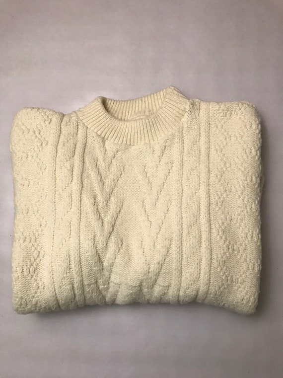 Vintage Fisherman Sweater Cream Knit mens cream fisherman sweater