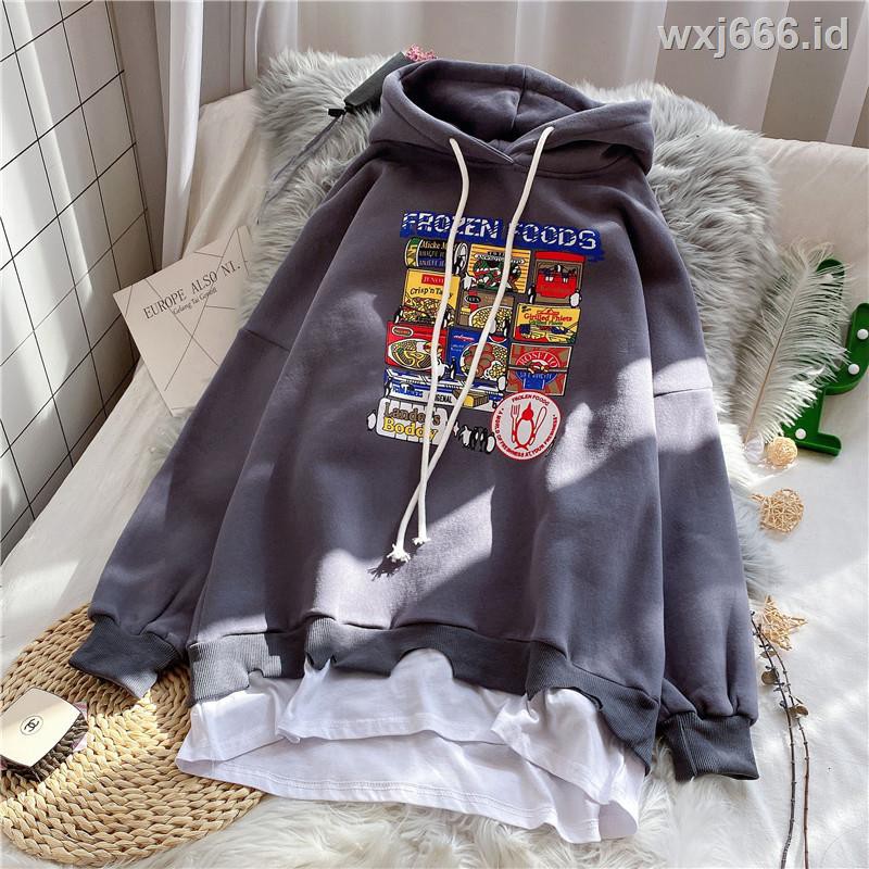 Longgar Lengan Panjang Bahan Fleece sweater kaos hoodie