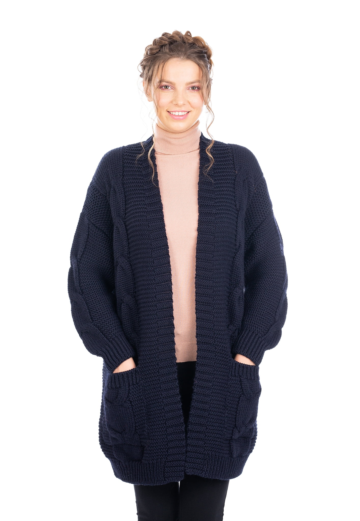 SAOL - SAOL Long Cable Knit Open Front navy blue cardigan walmart