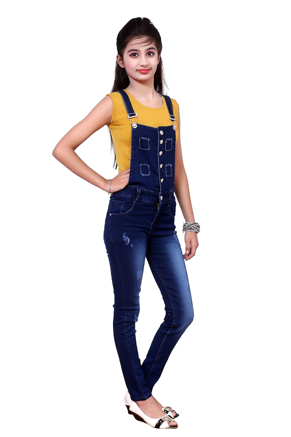 FNOCKS Denim Square Neck Dark Blue Kids full dangri jeans