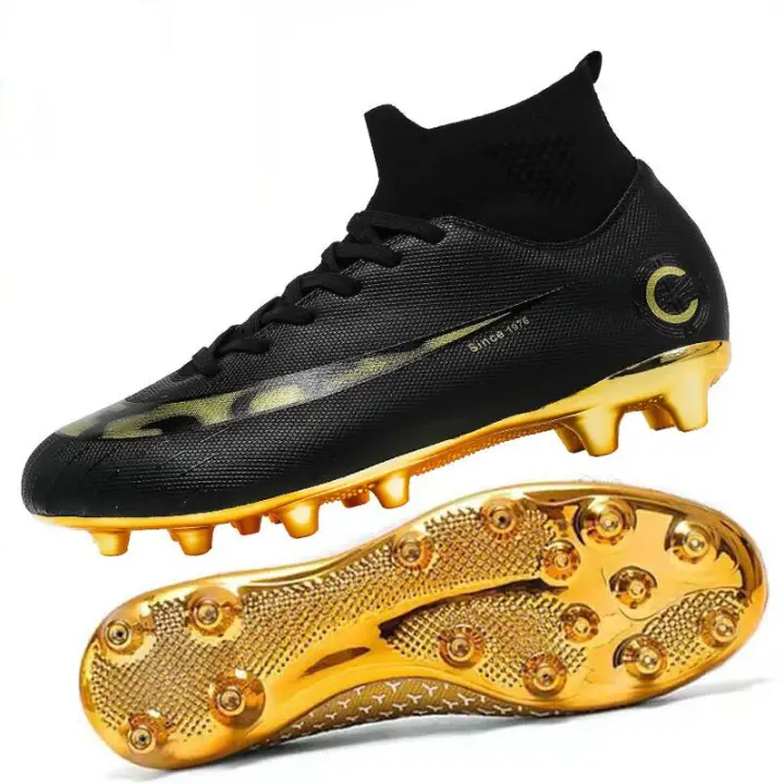 Golden Men Football Boots High Ankle golden soccer shoes