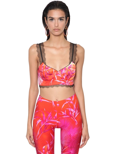 Versace - Jungle print twill \u0026 lace bra versace jungle print sports bra