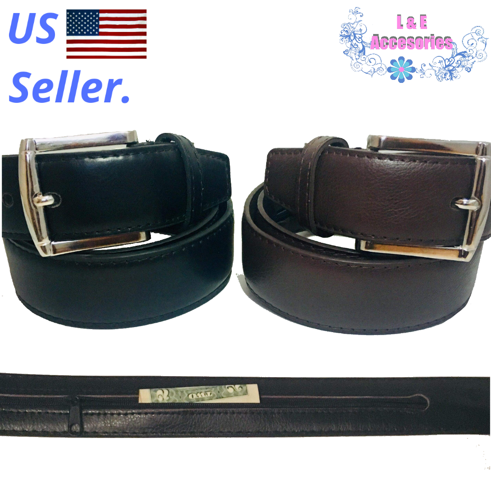 MENS LEATHER TRAVEL BELT HIDDEN SECRET men's belt with hidden zipper