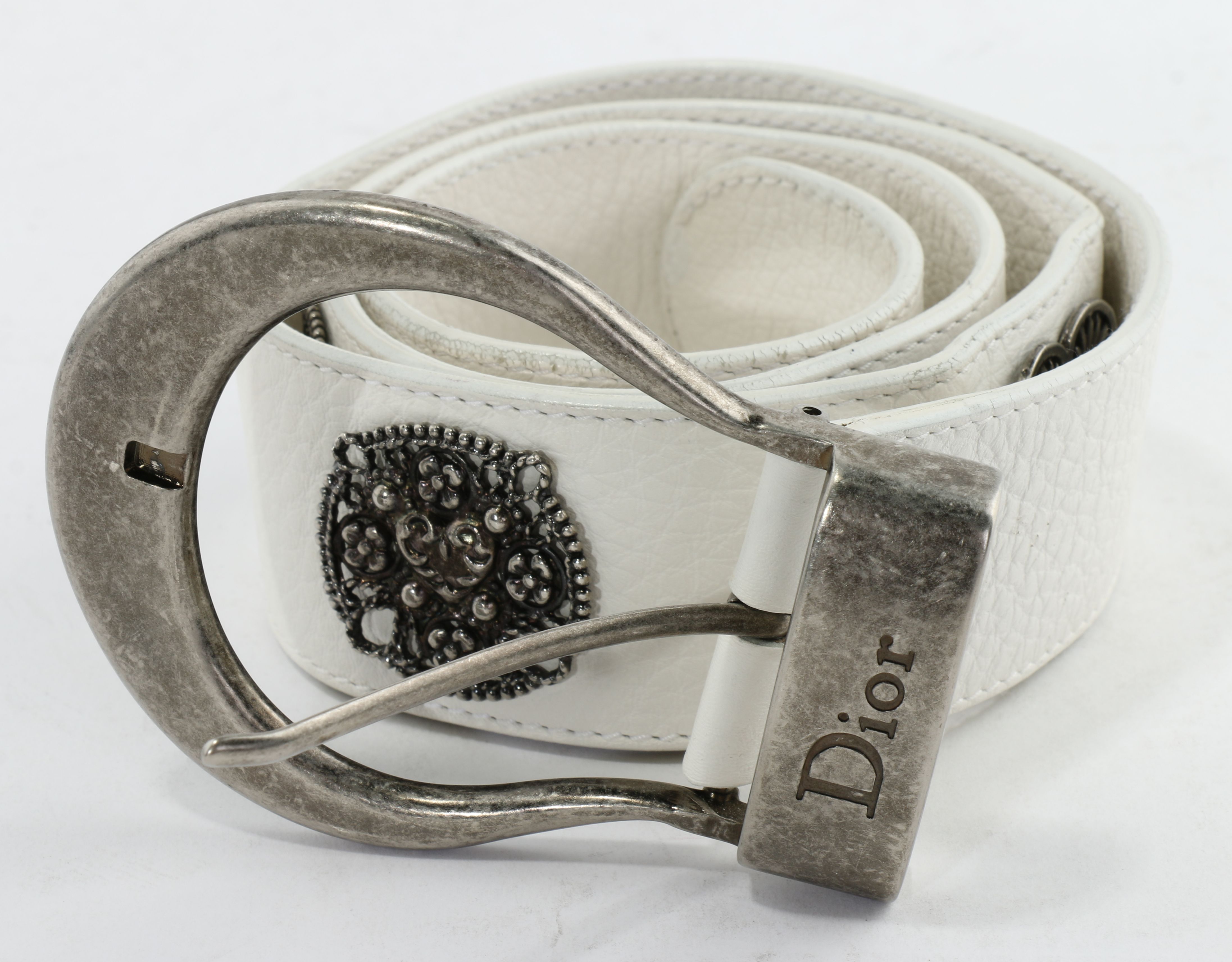 Christian Dior White Leather Belt with dior white belt