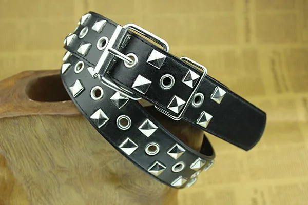 3-row Metal Pyramid Studded Genuine mens pyramid studded belt