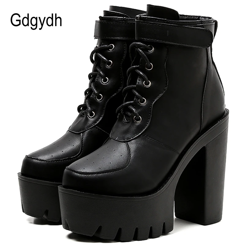 Gdgydh Spring Autumn Russian Women platform black boots lace up