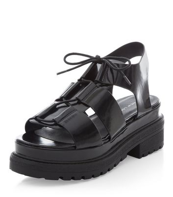 Black Lace Up Chunky Flatform Sandals black chunky flatform sandals