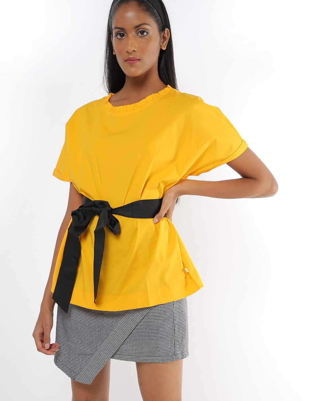 Yellow Tops for Women by UNITED COLORS tops belt