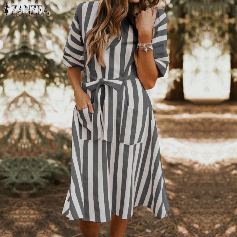 ZANZEA Women's Short Sleeve Midi Belt belt type dress