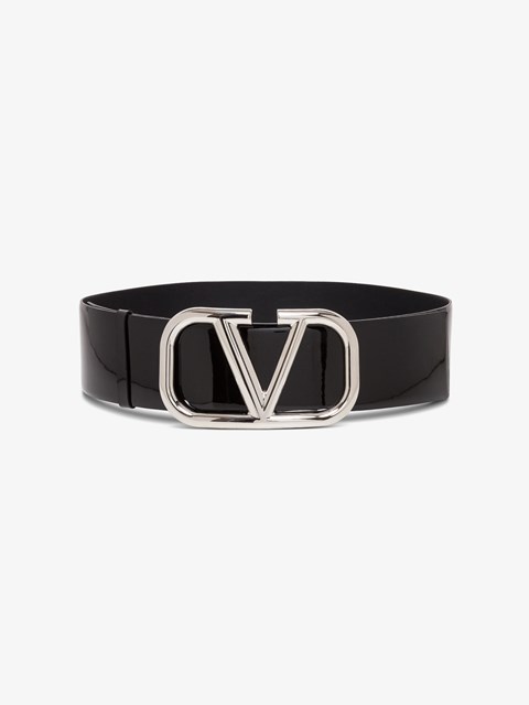 V Logo Patent Leather Belt Black valentino big v belt