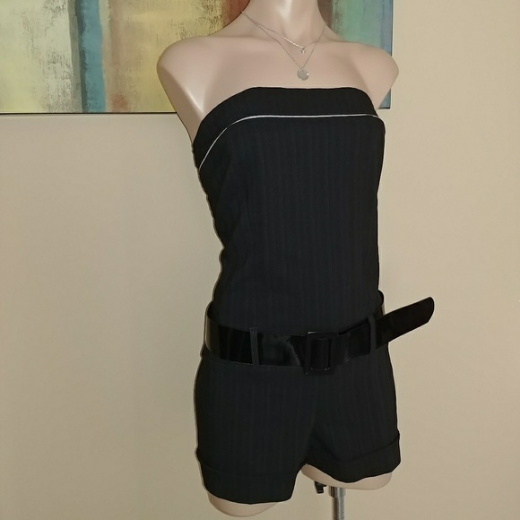 Lime Pinstripe Sleeveless Black Romper pants with belt on shoulder name