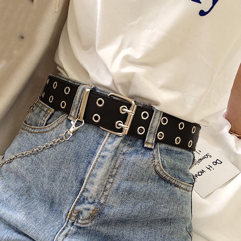 Women Belt Genuine Leather New Punk belt chain for jeans