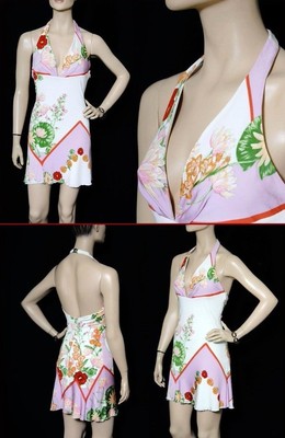 2005 VINTAGE VERSACE LOTUS FLOWER PRINT vintage versace mini dress