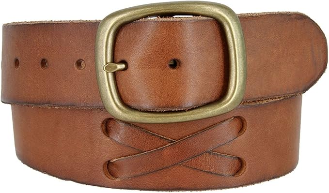 Hagora Men Real Full Grain Leather X leather belt brass buckle