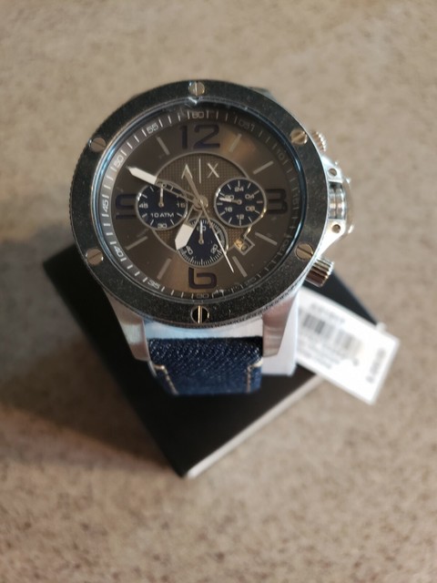 ARMANI AX 1517 牛仔布真皮錶