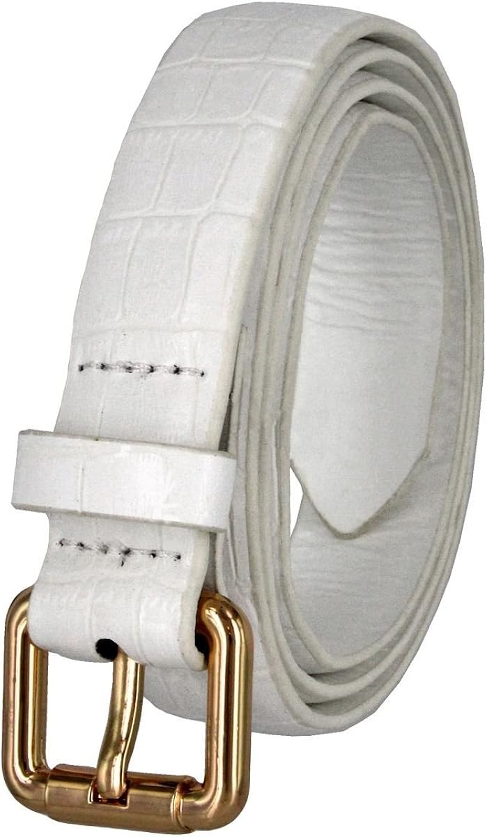 Women's WHITE Skinny Alligator Embossed white skinny belt
