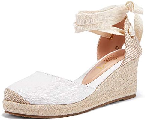 Ruanyu Womens Espadrille Platform Wedge white lace up platform sandals