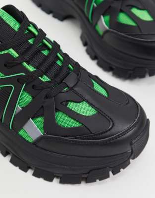 ASOS DESIGN trainers in green and black asos design trainers in black with chunky sole