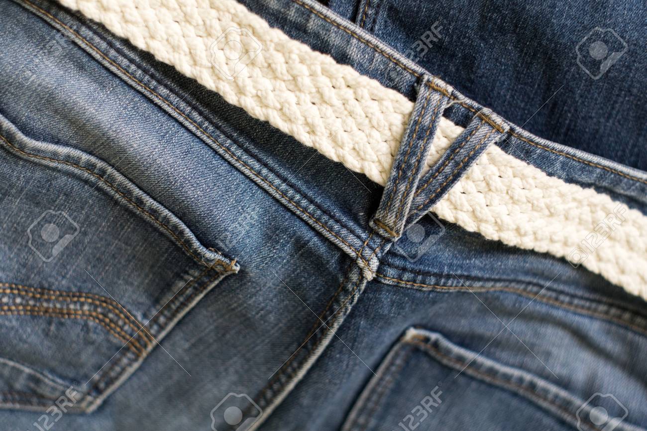 Blue Jeans And White Woven Belt. Men's mens denim belt