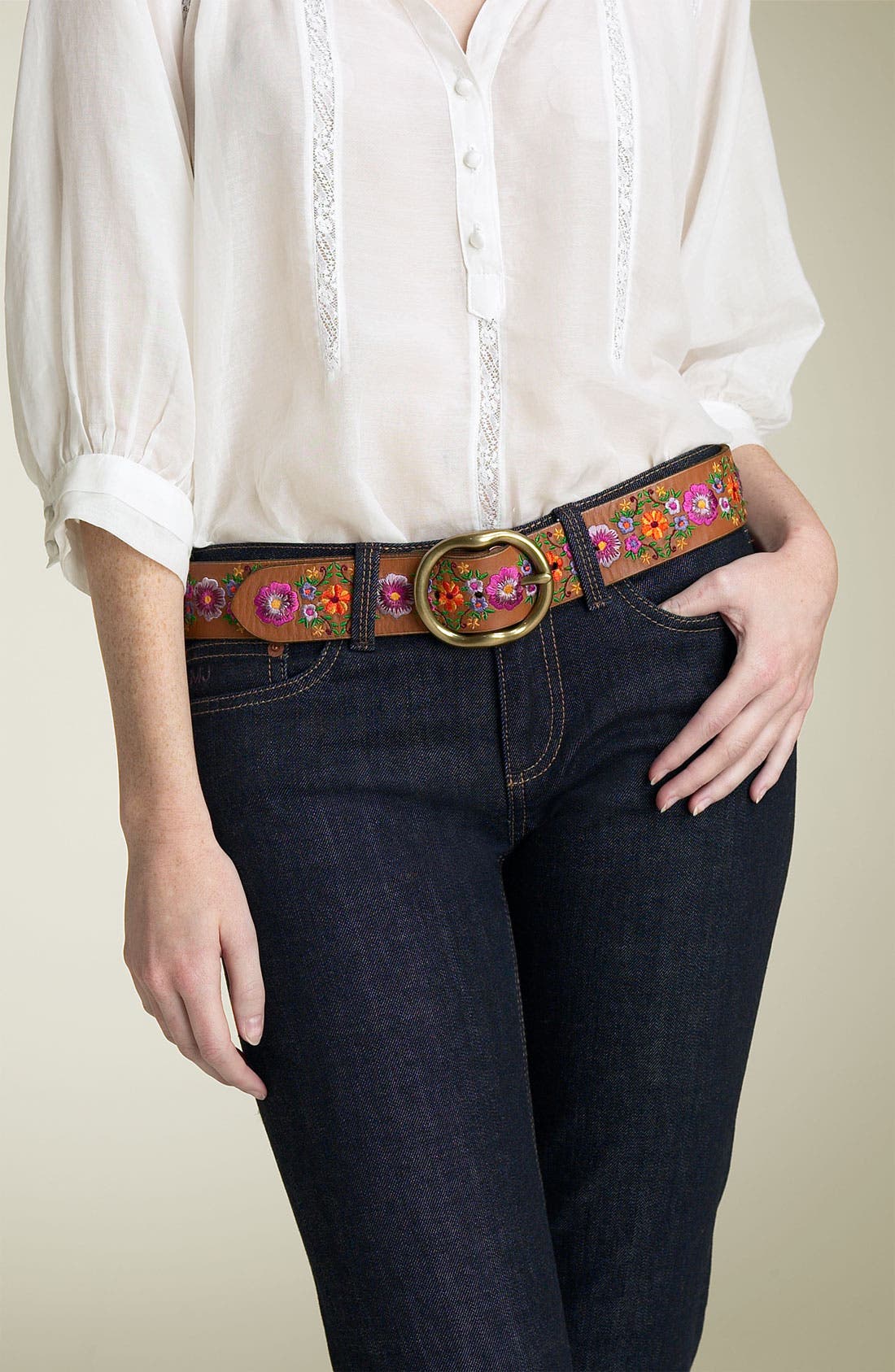 Lucky Brand Floral Embroidered Leather lucky brand embroidered belt