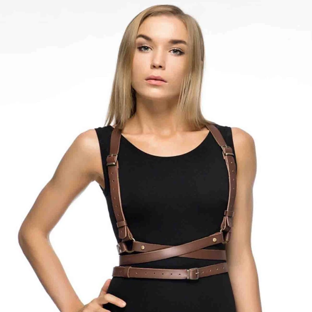 Women Leather Harness Sexy Punk Cross suspender harness waist belt