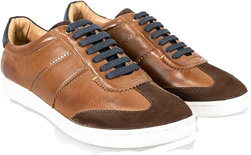 Men's Navy Blue \u0026 Tan Leather Lace Up navy smart trainers