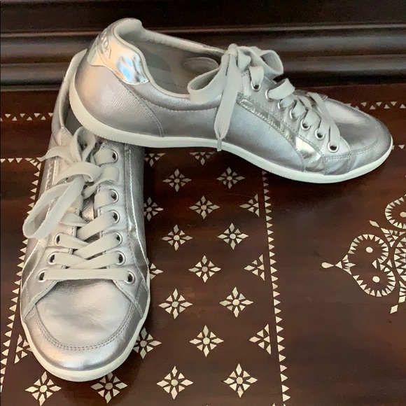 white and silver prada sneakers