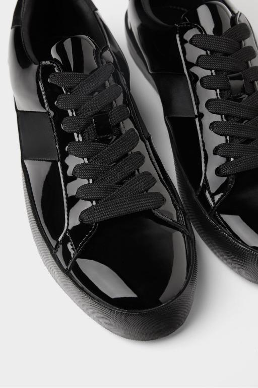 ZARA BLack Patent FInish Sneakers black shiny sneakers