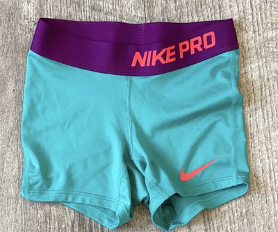 NIKE PRO YOUTH GIRLS TEAL PURPLE DRI purple nike compression shorts
