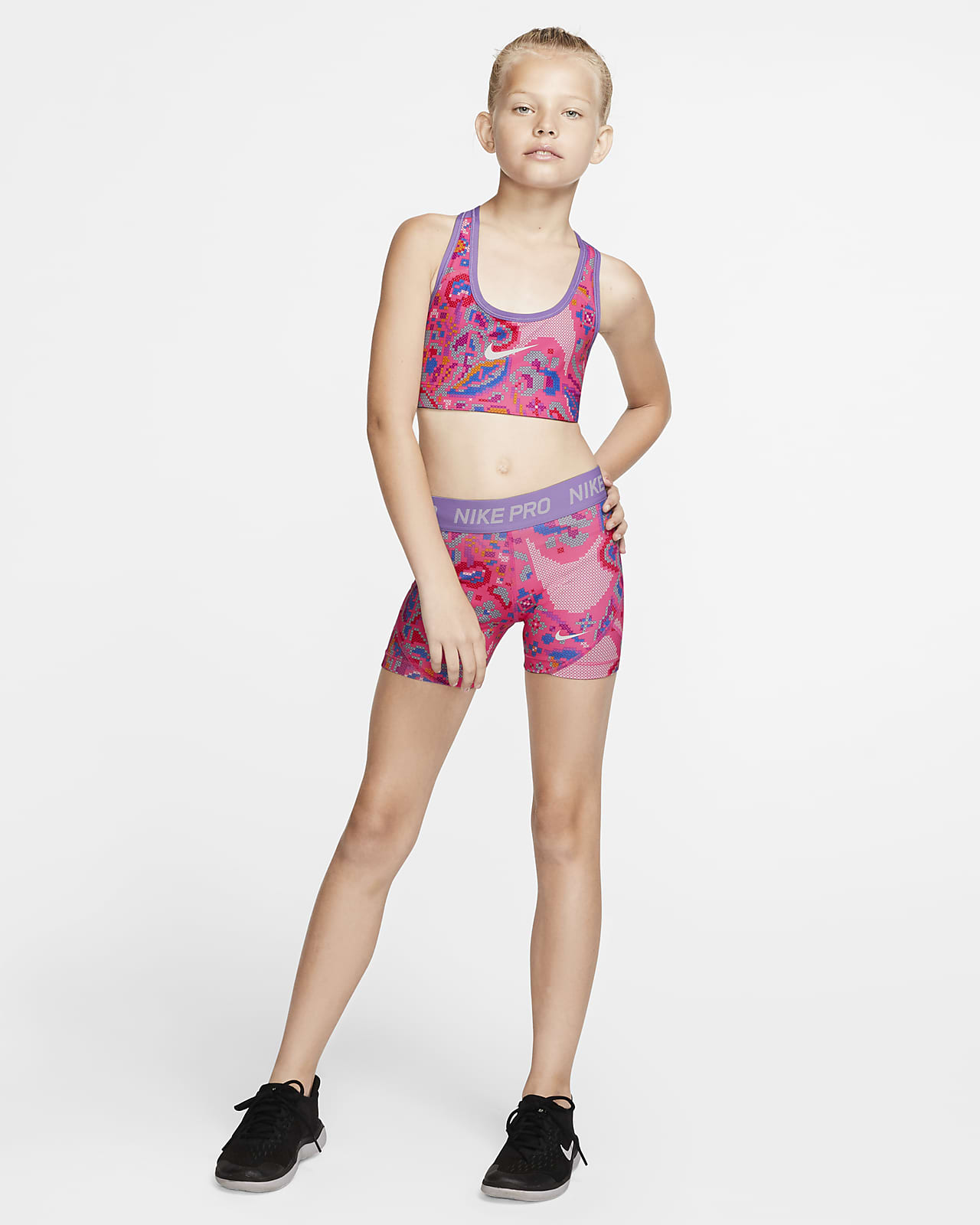 Nike Pro Older Kids' (Girls') Printed nike pro shorts and bra